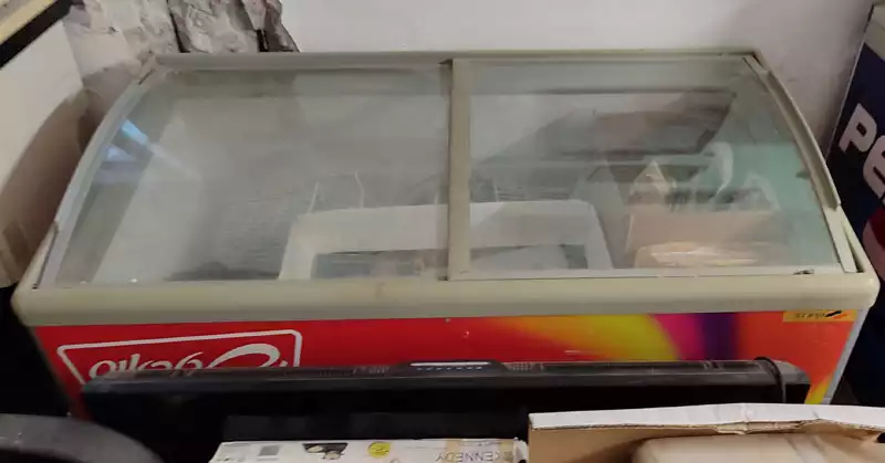 מקפיא גלידות ומקרר אמבטיה תקינים עובדים, דורשים ניקוי קל.