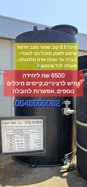 קיימים 2 זהים במלאי ומיכלים נוספים. מעולה לכל שימוש נוזלים!! אפשרות להובלת מנוף גמיש לרציניים