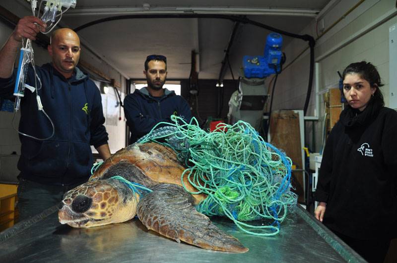 • 47% מפגיעות הפסולת הם מפסולת דיג. רשתות רפאים, חוטי דיג וקרסים נמצאו הן כגורם הסתבכות והן בקיבות הצבים.