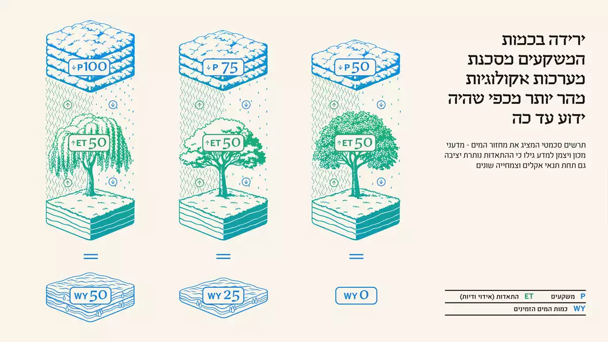 "השימוש במדד זה מראה שהמערכות האקולוגיות באזורים יובשניים, כמו ישראל, רגישות יותר משחשבנו לשינויי האקלים וקרובות יותר לגבול השרידות שלהם", מדגיש פרופ' יקיר. "אזורים לחים, לעומת זאת, רגישים יותר להצפות".